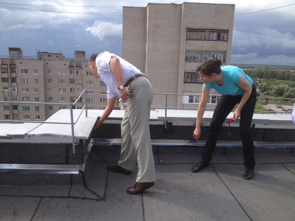 Работы по обследованию крыши включают в себя проверку состояния несущих конструкций и кровельного покрытия. Кроме того, в обязательном порядке проверяется исправность ограждающих элементов и составляется акт испытания ограждений кровли.