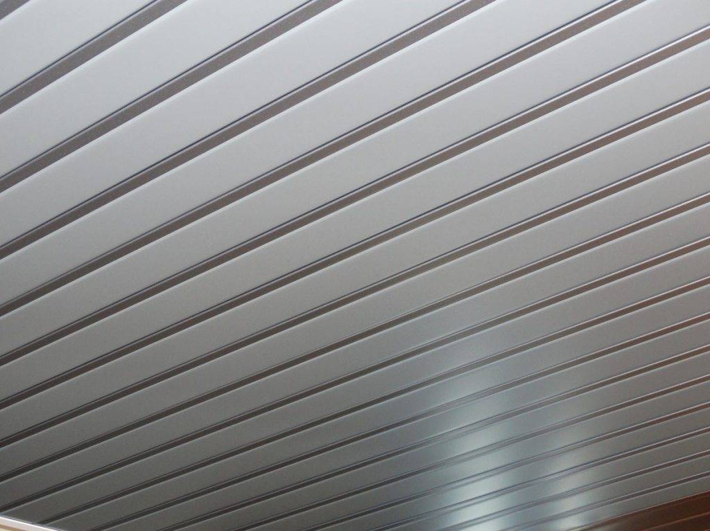 Алюминиевый. Наиболее востребованный вариант отделки потолка. Рейки из алюминия не боятся влаги, не подвержены деформации и устойчивы к температурным колебаниям. Частицы пыли не задерживаются на гладкой поверхности.