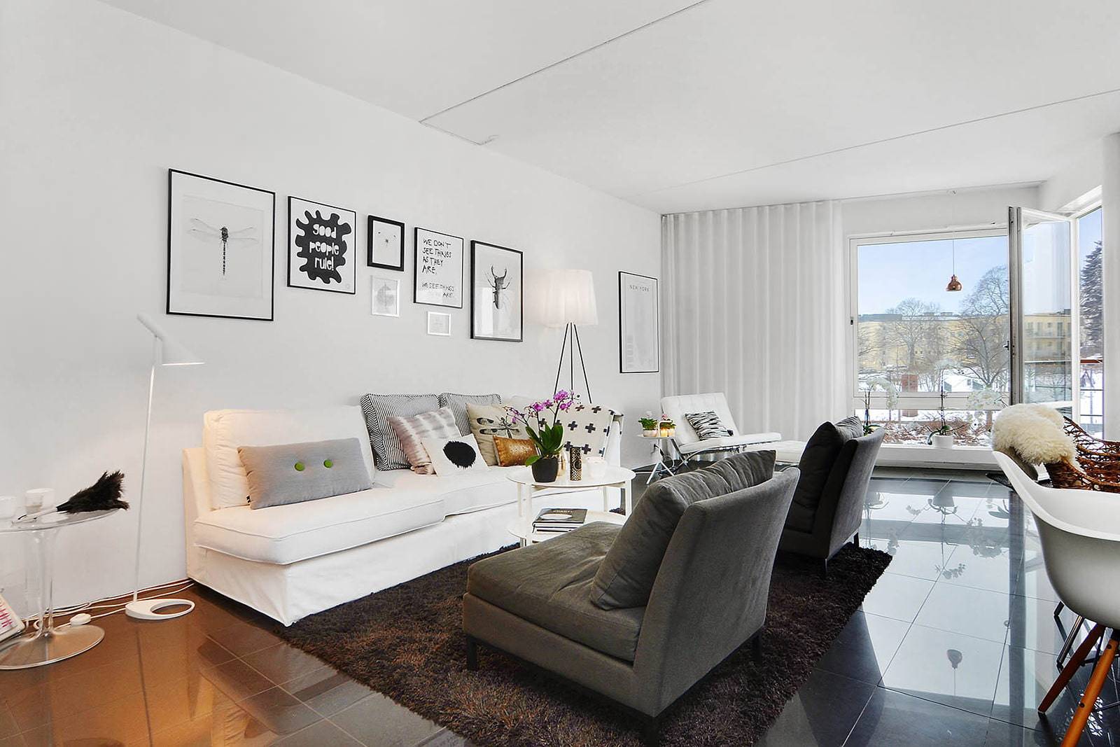 Для помещения с высокими потолками идеальным стал выбор белоснежной отделки, которая визуально увеличила и без того немаленькое пространство. Дизайнеры в оформлении использовали классическую формулу применения оттеночной палитры: