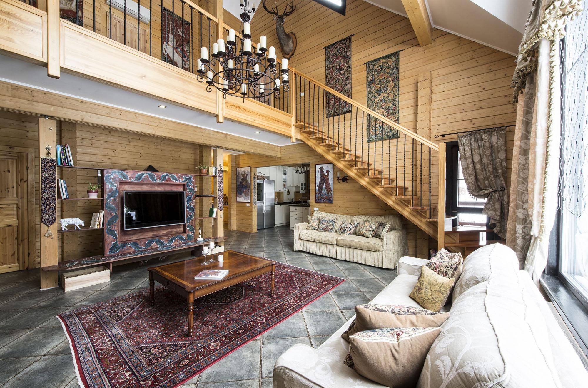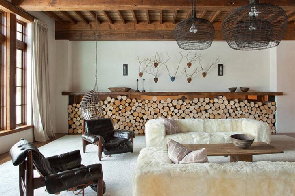 Уютная комбинация стилей шале и кантри в оформлении гостинойИсточник paydaydcr.com