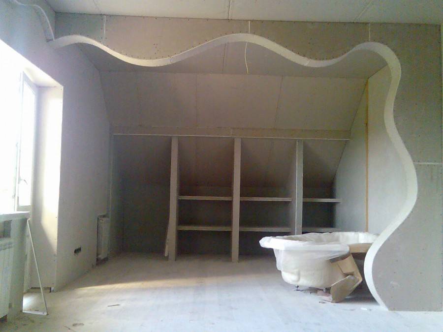 К слову, из гипсокартона можно создавать большое количество ниш, стен и проемов.