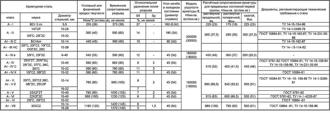 В таблице 1 приведены данные для сеточного варианта арматуры, а в таблице 2 – для одинарного армирования стальными стержнями от 10 до 16 мм.