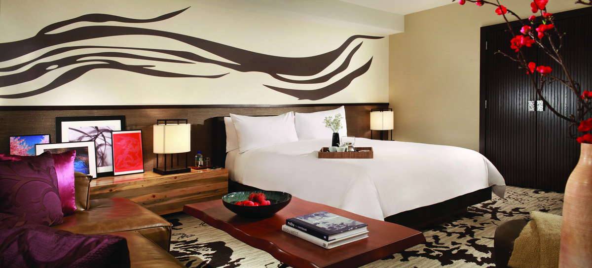 Все номера спроектированы с вниманием к деталям — в них есть итальянские простыни, а фэншуй в номерах тщательно продуман дизайнерами. В дополнение к этому, в номерах есть собственные японские произведения искусства, и общие цвета комнат золотисто-фиолетовые