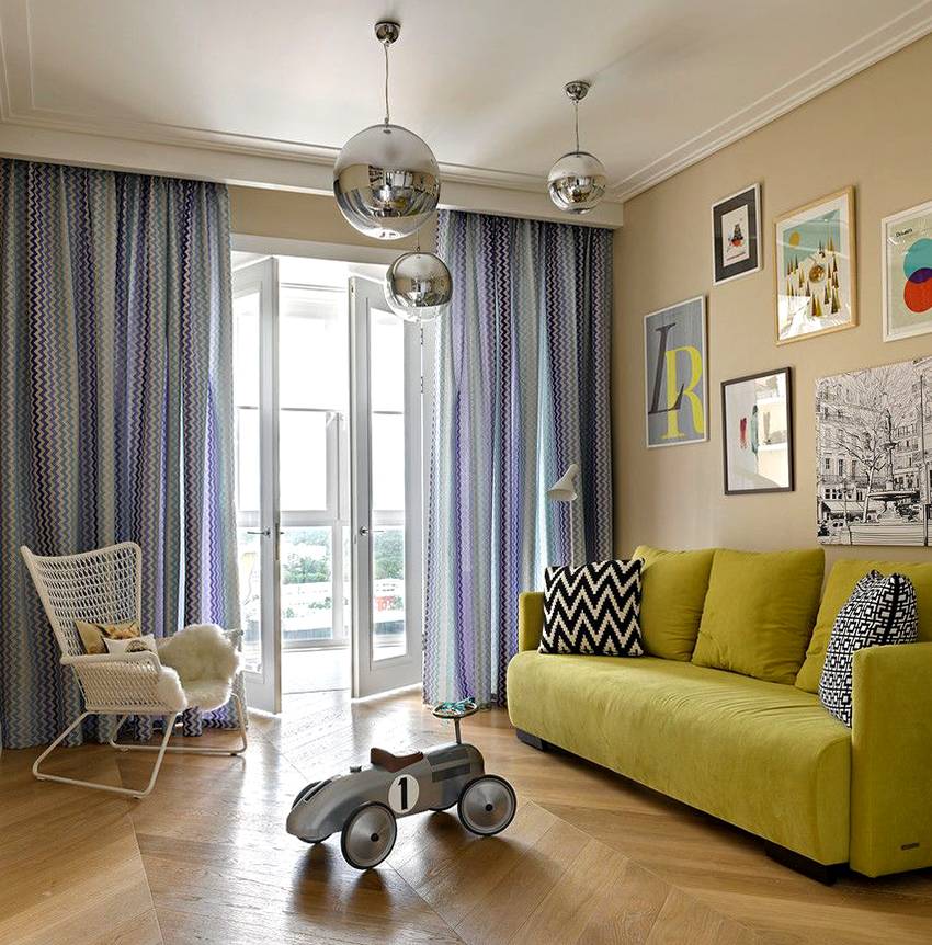 Багеты подбираются не только под общую стилистику интерьера, но и под шторы. Особенно актуален этот вопрос в случаях, когда в качестве основной стилистики выбрано эклектическое направление. Поскольку подобрать под стиль багет не выходит, ориентируются на внешний вид занавесок.