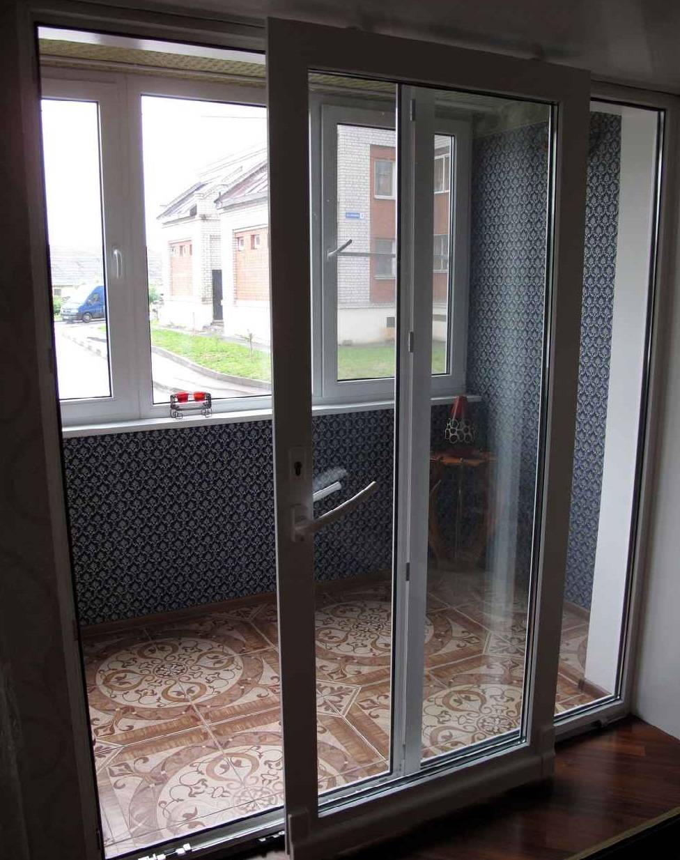 Такой способ нашёл применение при обустройстве балкона холодным способом, для малогабаритных помещений и где не эффективно применение распашного метода открывания дверей.