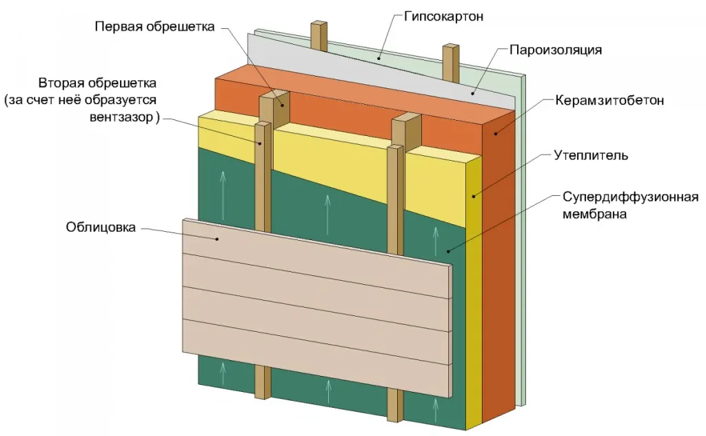 Керамзитобетон — исключительно гигроскопичный материал. Он легко набирает воду и столь же легко испаряет ее через многочисленные поры. Однако в зимние холода вместо испарения влага после остывания стен станет кристаллизоваться в их толще, провоцируя ускоренное разрушение материала.