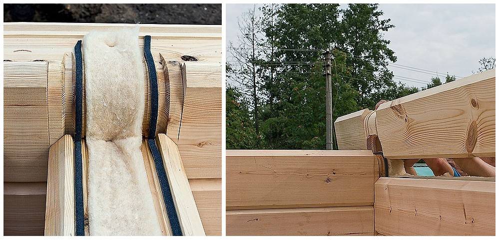 | 1. Финский профиль круглыми чашами | ![]() ![]() | Сам профиль бруса имеет соединительные шипы сверху и канавку под них же снизу. Между шипами есть ступенчатая выемка, которая по краям более мелкая, а в середине более глубокая. Чаши вырубают полукруглой формы | Для утепления используется широкая утеплительная лента по центру, например, PP-TERMO, и две узких полоски уплотнителя по бокам |