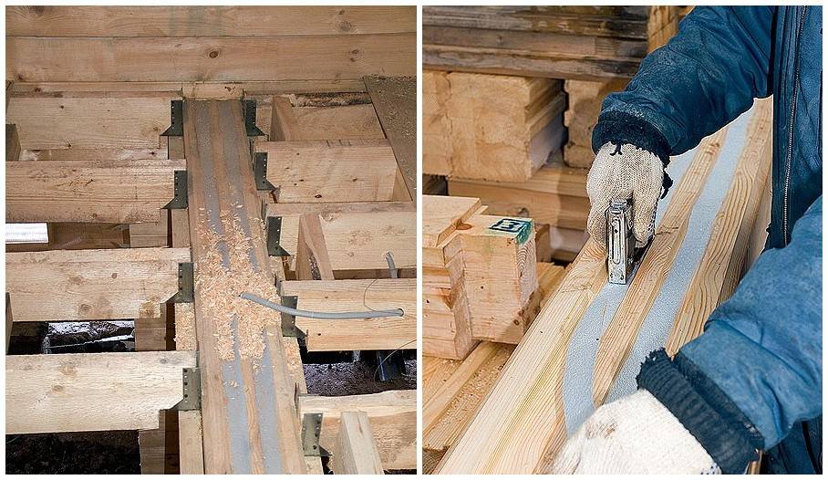 | 8. Т-образные сращивания всех видов профилей | ![]() | Зарубки-пазы выполняются в брусах несущих стен, а на брусах межкомнатных перегородок прорубают шип | Используется джутовый уплотнитель |