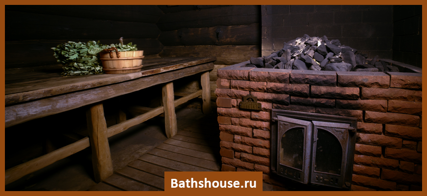 Банные печки такого типа объединяет отсутствие дымохода. После сгорания дров из топки выгребают угли и головешки и выносят их наружу. Полати и пол моют с использованием песка или другого абразива.