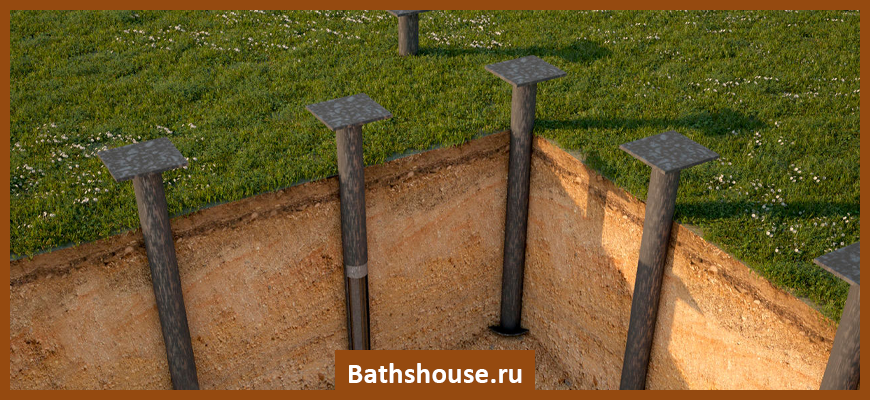 Кроме того, фундамент на сваях для бани можно сделать из готового набора опорных элементов, они есть в продаже в строительных магазинах.