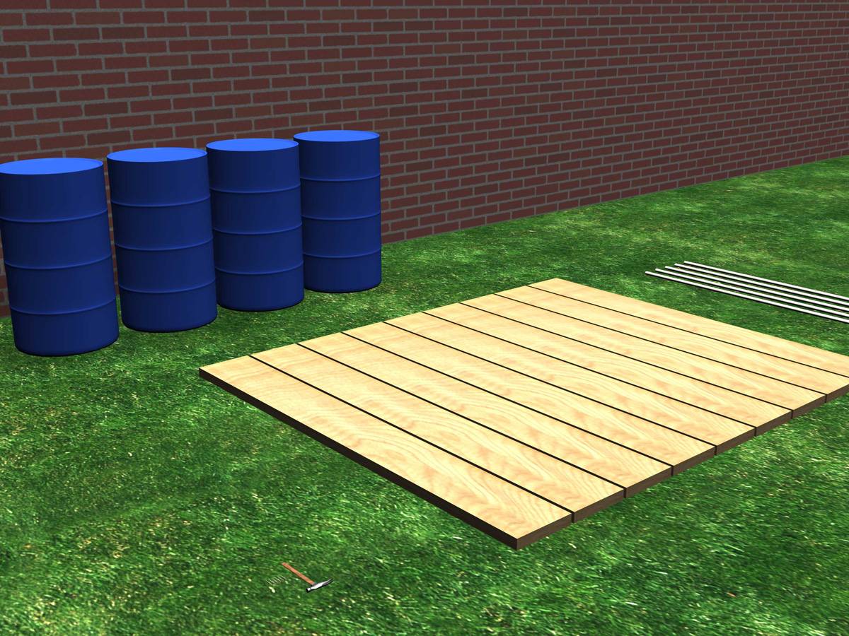 Итак, как же сделать понтон из бочек своими руками? Рассмотрим пошаговое изготовление понтонного причала небольших размеров. Для работы нам потребуются следующие материалы:
