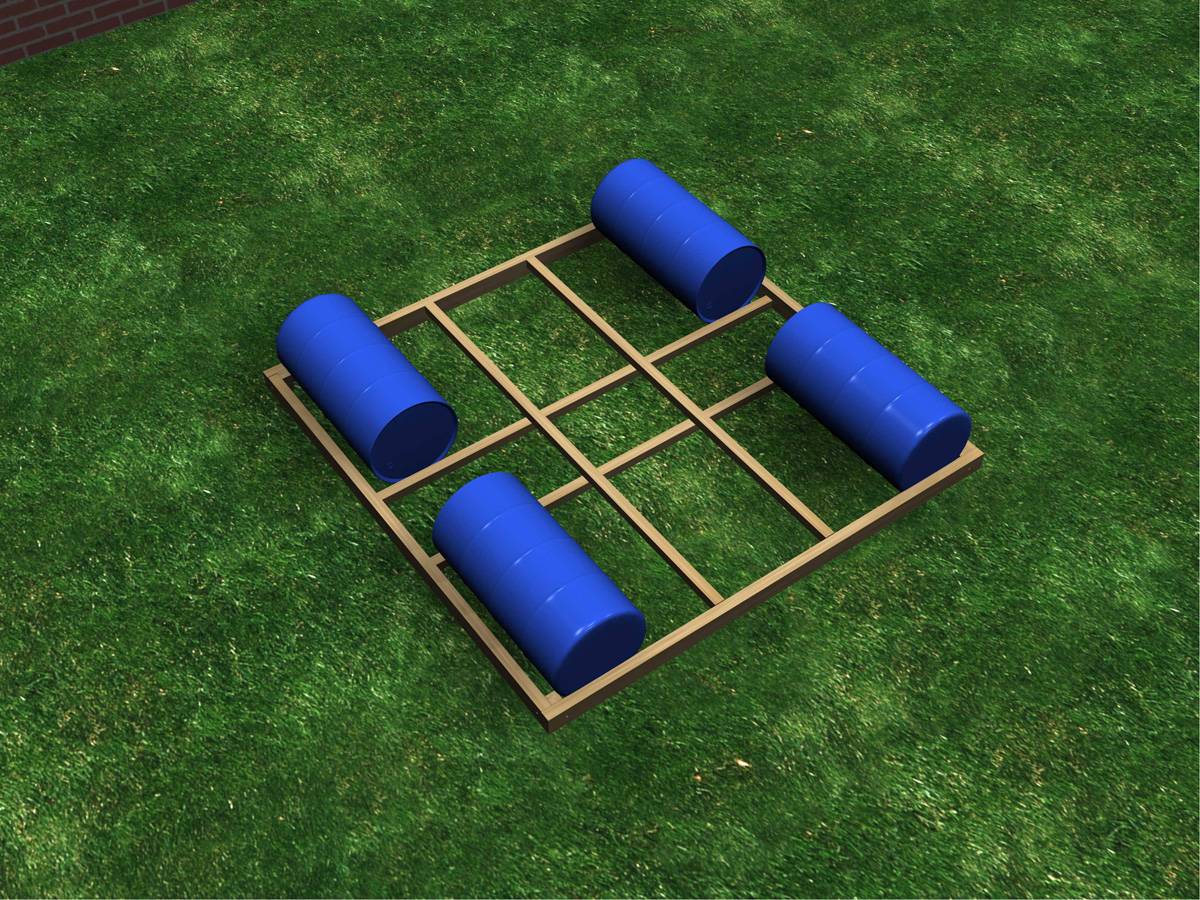 В нем легко смогут расположиться четыре бочки. Для сборки каркаса используем брус. Чтобы получить идеально ровный квадрат, в каждый из четырех внутренних углов можно вложить по отрезок бруса, или перед приворачиваем частей каркаса проверять с помощью рулетки диагонали квадрата