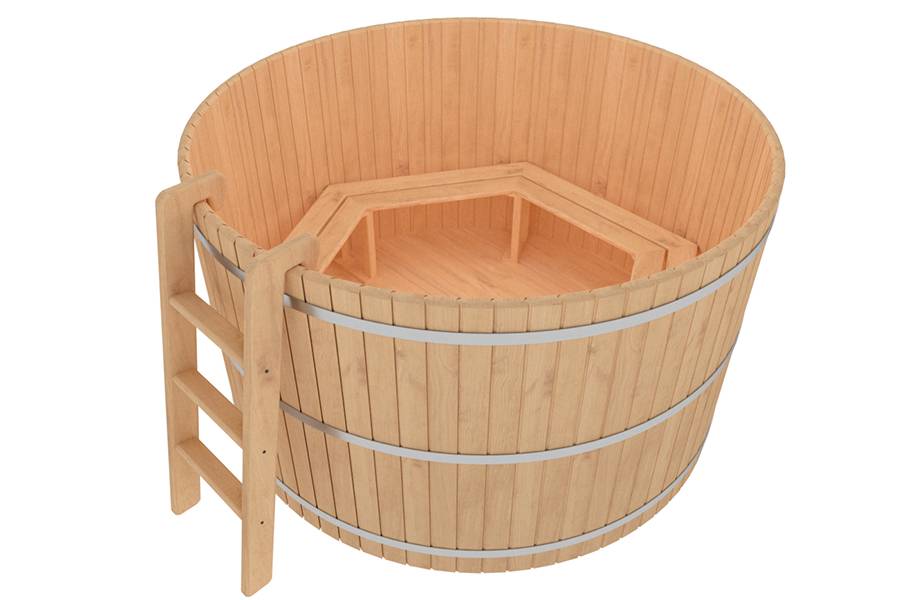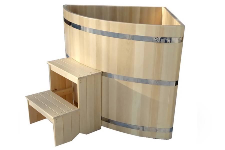 В современных банях используются различные варианты конструкций, которые отличаются формой, размером и материалом изготовления. Универсальные купели для бани изготовлены из деревянных планок, соединенных металлическим обручем. Более функциональные модели устройств оснащаются системой обогрева или гидромассажем.