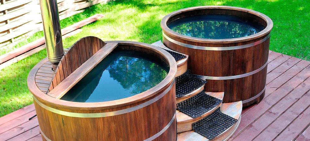 С учетом объема могут устанавливаться в небольших банях и огромных комплексах. По своему устройству напоминают японские бочки для омовения. Чаще всего именно такие конструкции оснащают подогревом и гидромассажем.