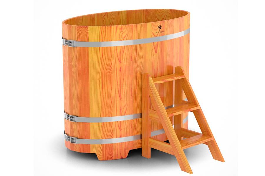 - Деревянные банные купели наиболее привлекательный и распространённый вариант, поскольку помимо эстетической привлекательности дерево обладает ещё целебными свойствами, не говоря уже о специфическом запахе, знакомом с детства.