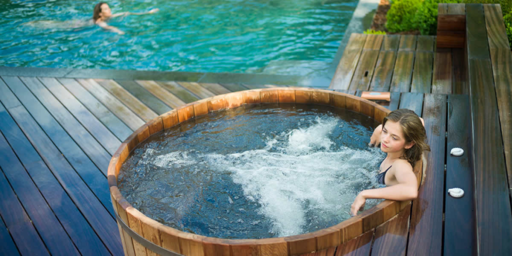 - Гидромассажными. Резервуар со всеми комплектующими поставляется в готовом виде. Размеры маленькие. Подходят для расслабления, поплавать в таких не выйдет. Устанавливаются во внутренних помещениях СПА-комплексов.