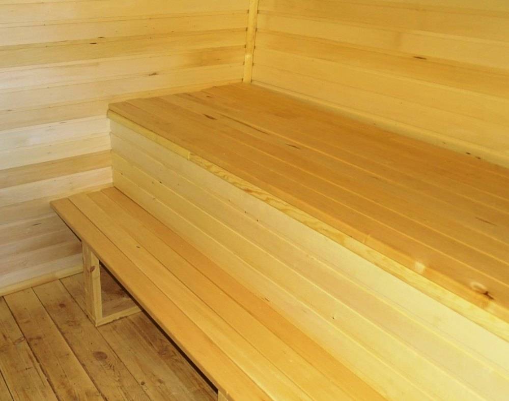 В парилке устраивают удобные лавки для сидения или лежания, ставят отдельную скамью для работы банщика.