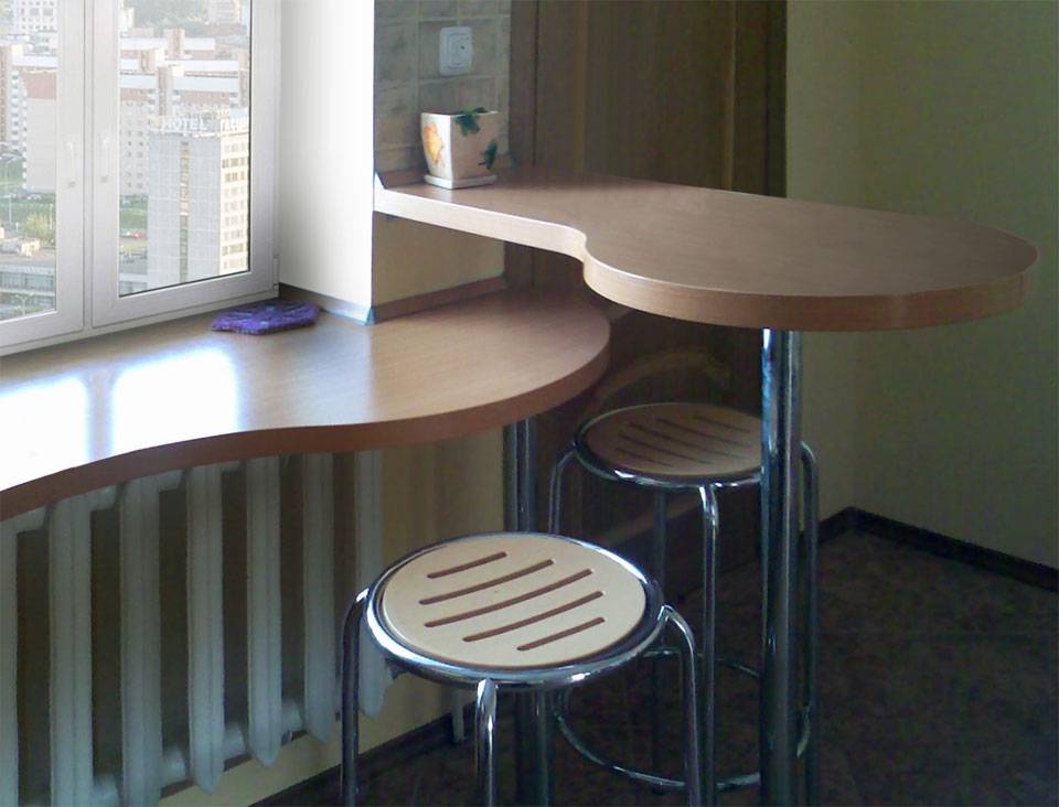 Второй вариант размещения — это полная замена подоконника в качестве продолжения угловой кухни. Находится впритык к окну. Фактически заменяет подоконник.