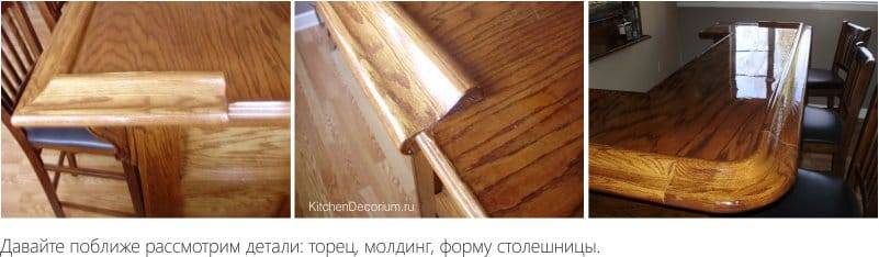 Столешницы из натурального дерева стоят дорого. Но и выглядят они намного красивее и роскошнее. Такие изделия подходят под классические и современные кухонные интерьеры. Минус деревянных столешниц – необходимость тщательного ухода за ними. Барные столы из камня невосприимчивы к воде, практически не подвержены механическим воздействиям. Но сделать их собственноручно очень трудно. Раскрой камня в домашних условиях нельзя произвести на должном качественном уровне.