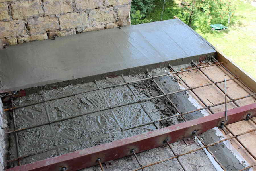 Выравнивание поверхности производится по вершинам маячков. Толщина бетонного слоя составляет порядка 12-20 см. Уплотнение массы проводится с помощью вибратора, а при его отсутствии при помощи штыковой лопаты. Заливку всей площади за 1 заход очень сложно из-за значительного объема раствора. Для упрощения задачи бетон заливается по участкам, которые ограничиваются временной передвижной опалубкой из доски нужной ширины. Залитый черновой пол выдерживается в течение 10 суток для высыхания и набора прочности.