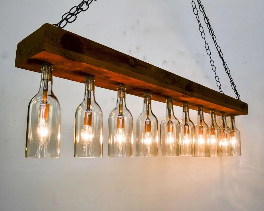 Оригинальный светильник создается из маломощных ламп, основания из дерева, каната либо цепей. Стильная конструкция может быть выполнена из лампочек необычных форм и изогнутых алюминиевых труб. Модели со стильным дизайном включают древесину, разнокалиберные трубы, проволоку и абажуры из стекла.