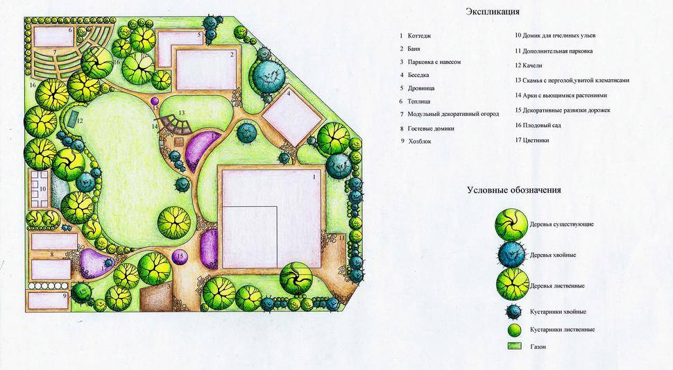 И снова о плане при благоустройстве территории. Не стоит лениться, проект нужен, чтобы не пришлось потом перемещать прижившиеся растения или даже сооружения на другое место. Прежде всего, на плане выделяются зоны отдыха, участки для сада и овощные грядки.