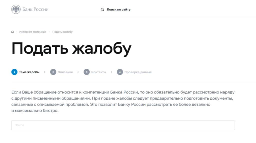 Отправить обращение в ЦБ можно удаленно на сайте этой организации, на специальной странице «Интернет-приемная». Внизу данной страницы есть нужная нам клавиша «Подать жалобу». К своему обращению человек должен будет приложить документы, подтверждающие его правоту (справки о текущих доходах, о доходах за 2019 год, кредитный договор с банком). Если финансовая организация вынесла по вашему обращению официальный отказ, то нужно приложить и его.