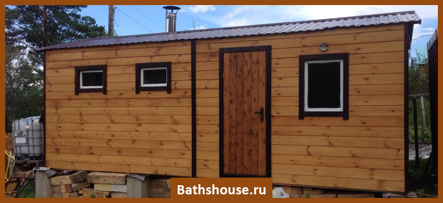Считается, что оборудовать парную можно из чего угодно, ярким примером народного принципа может послужить бытовка – баня. Простые и одновременно легкие в сборке парильно-помывочные отделения обычно делают из строительных вагончиков и передвижных времянок. Уровень комфорта, конечно, ниже, баня вагон — результат переделки, а не целенаправленного проектирования, но париться в ней можно с неменьшим удовольствием.