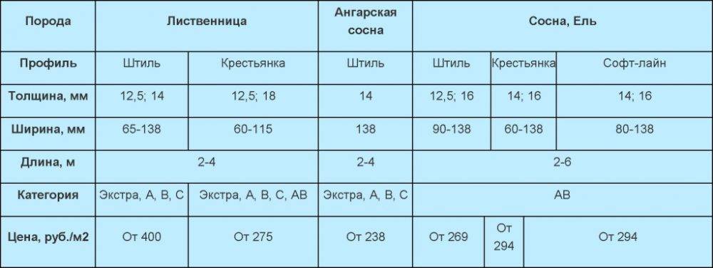 Характеристики вагонки