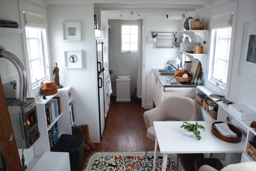 - Компактность. Организация пространства мини дома на базе бытовок продумывается тщательным образом, даже на небольшой площади оборудуются все необходимые удобства.