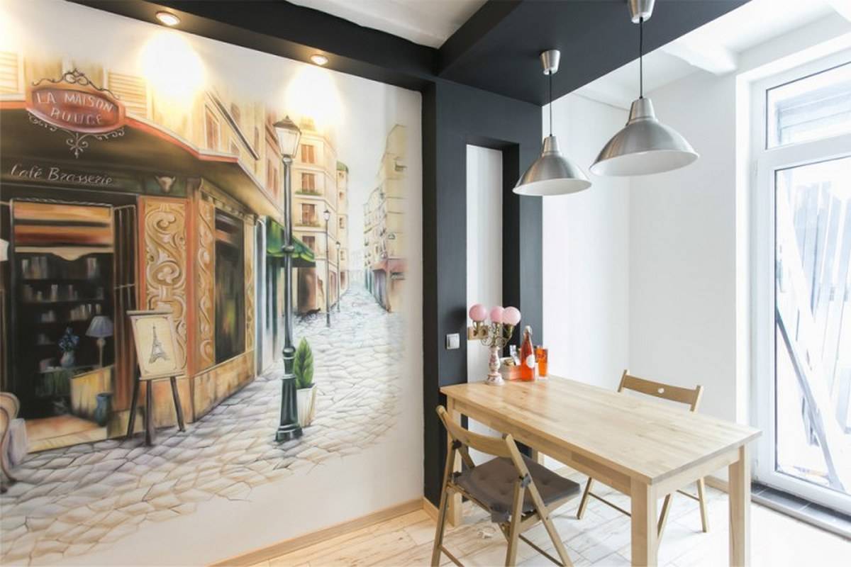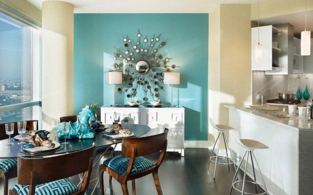 - Краска. Контрастная окрашенная стена станет украшением вашего интерьера и выделит обеденную зону.