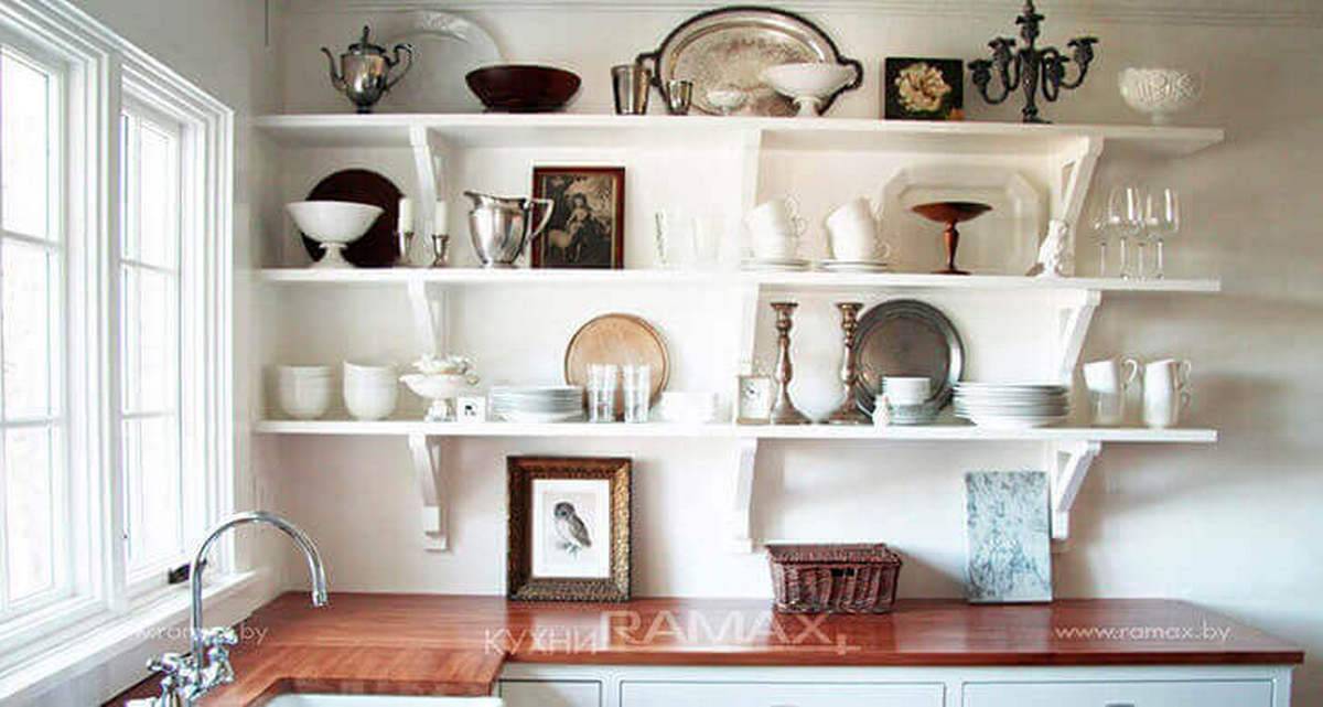 Традиционный стиль подойдет хозяйкам, которые любят красивые вещи в простом оформлении. Классический интерьер включает в себя привычные всем предметы обихода: стол, шкаф для посуды и полки для домашней утвари. Оформить его можно при помощи изящной посуды на видном месте, которая хранилась в память о предках.