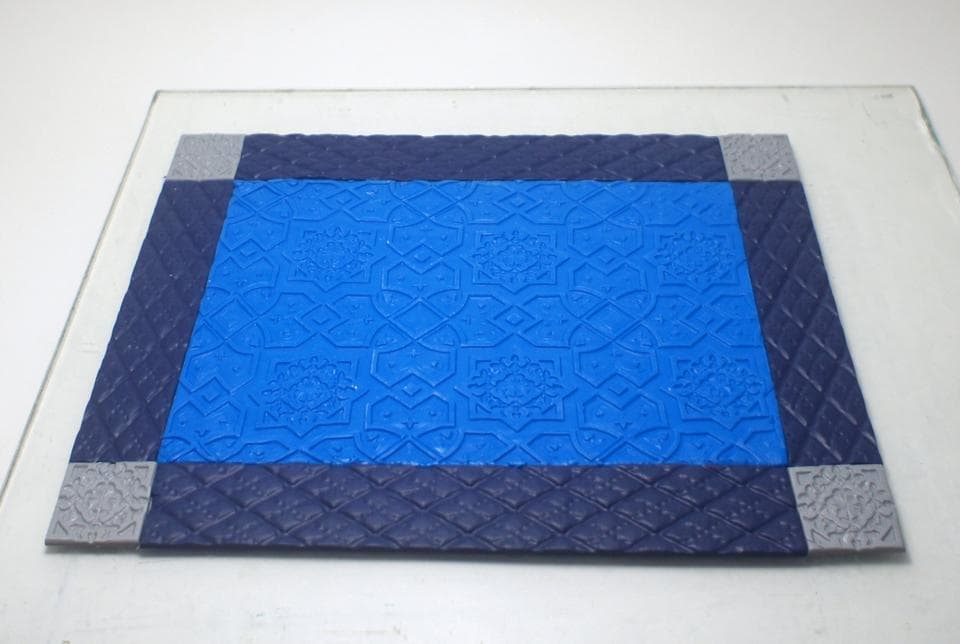 После того, как достигли нужного результата, берем текстурный лист и переносим рисунок на глину.