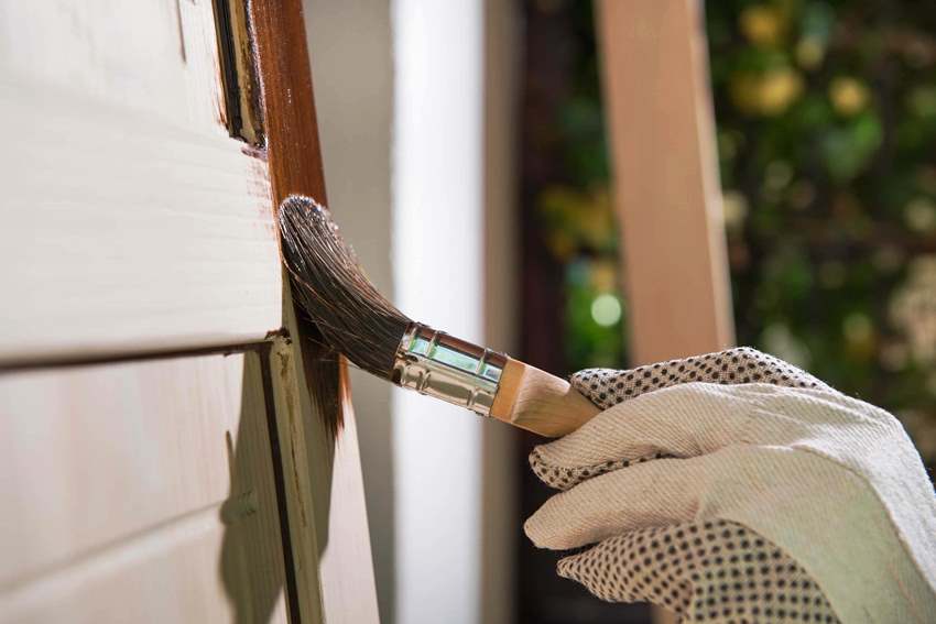 - Покраска. Для изготовления дверей лучше применять лакокрасочные материалы на водной основе, поскольку у них менее неприятный запах. Наносить краску нужно специальной кистью, хорошо растирая ее по поверхности дерева.