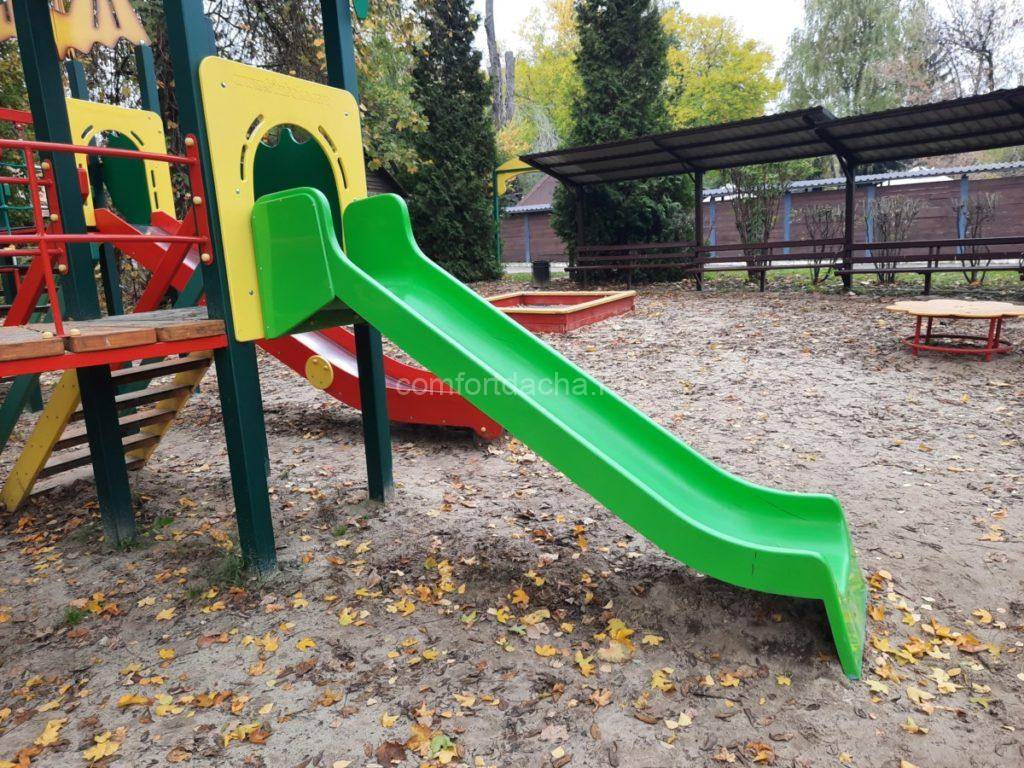 Чтобы смягчить неизбежные падения во время активных игр, участок вокруг горки рекомендуется засеять газоном или использовать прорезиненное покрытие.
