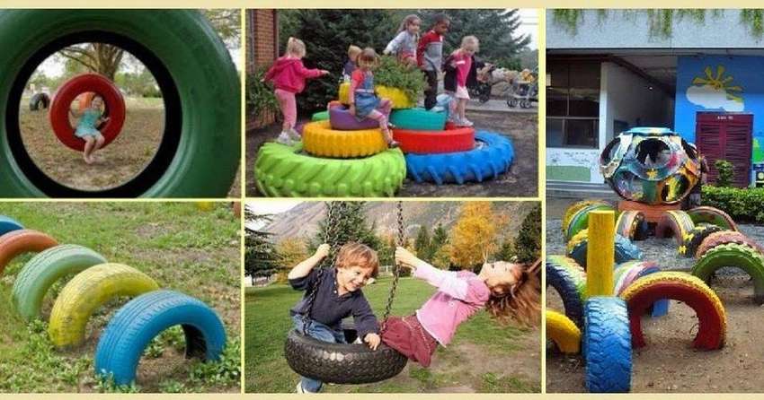 У многих дома скопилось много уже отживших свой век покрышек. Выбрасывать просто так их нельзя, это очень неэкологично. Что же тогда с ними делать? Из старых покрышек можно сделать отличные детские площадки. Смотрим 12 фото как это можно сделать.