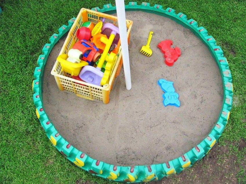 Разнообразные песочницы займут детей до 7-8 лет. Небольшую песочницу для малышей можно изготовить из большой шины (очень большой), а для деток постарше придется мастерить строение из досок.