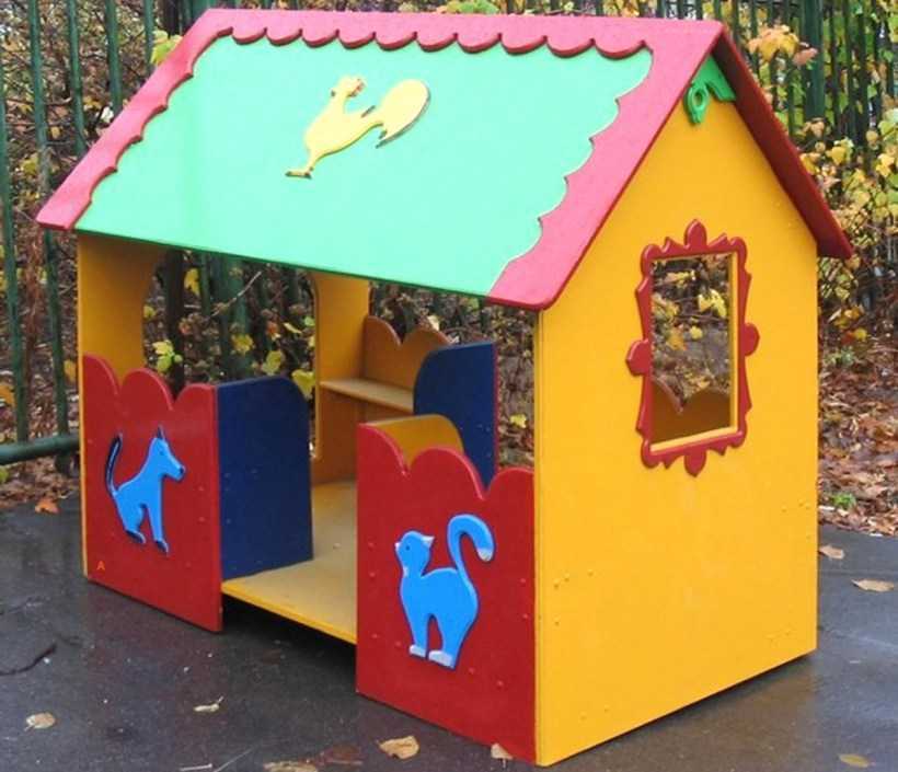 - Дети 3-5 лет. В этом возрасте все малыши собственники и индивидуалисты. Для них интересны яркие пружинные качалки различных форматов, лабиринты, качалки-балансиры. Можно построить домик со столиком и стульчиком и укомплектовать его горкой для детской площадки. Для совсем маленьких соорудите шалаш из старых покрывал. Песочница считается самым популярным элементом игровой зоны: дети с удовольствием лепят фигурки в ней до 7 лет. Также обязательным развлекательным атрибутом являются качели. Для младшего возраста их делают невысокими, с небольшой амплитудой раскачивания. Когда ребенку исполнится 5 лет, добавьте элементы, развивающие интеллект — доску для рисования, различные считалки. Купить их можно в интернете, но даже при наличии небольшого опыта их легко сделать своими руками.