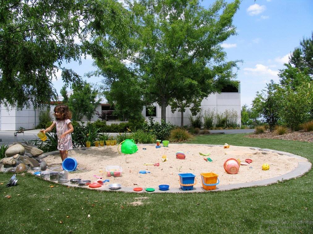 | 2-3 года | Песочница, маленький надувной бассейн, песочница с грибком, простейшие качели (опционально). |