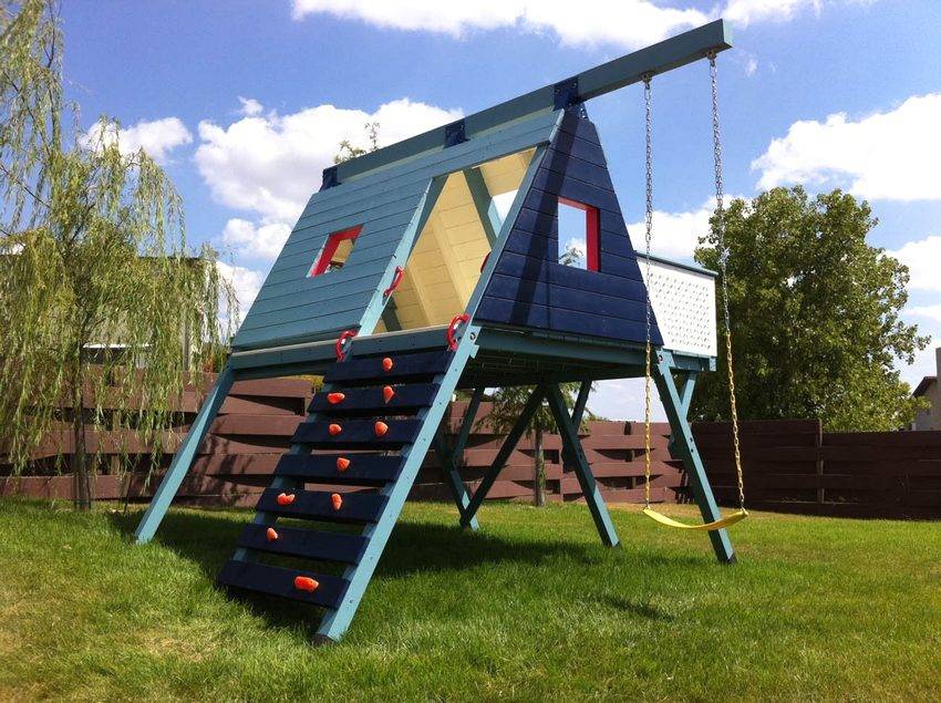 Такое строение можно снабдить веревочной лестницей или горкой.