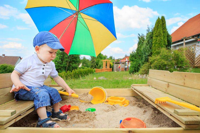 Что касается материалов, то лучше всего делать такую конструкцию из дерева, но тщательно обработанного, а также из пластика. Постарайтесь сделать крышку для такой песочницы, чтобы закрывать ее в то время, когда дети не играют.