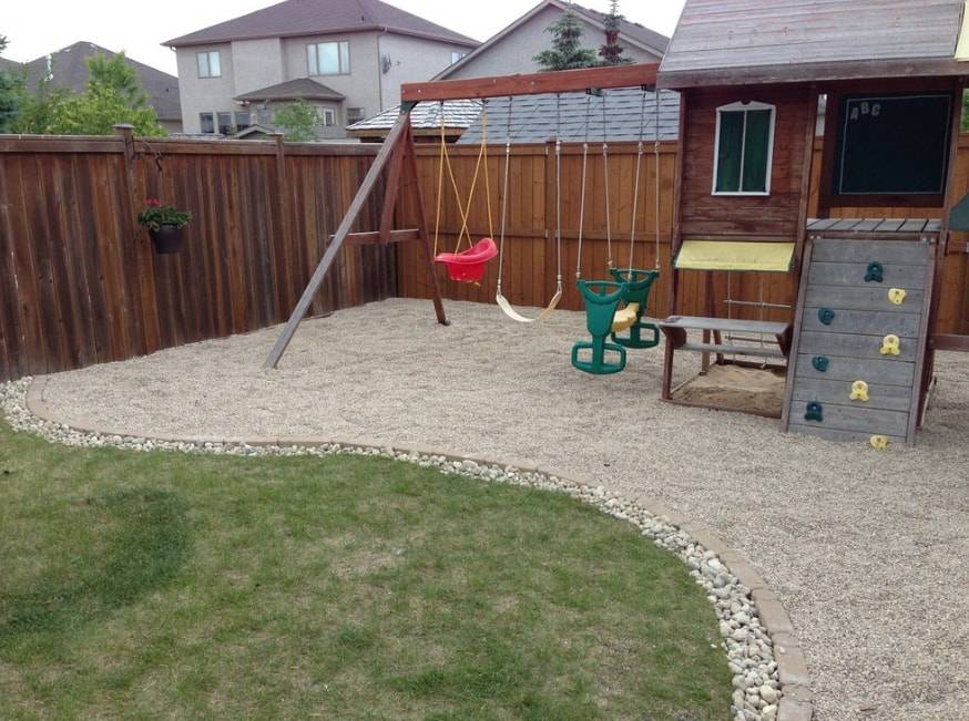 территорию будущей детской площадки необходимо тщательно выровнять, убрав кочки, крупные камни и корни, торчащие из земли, сорняки и прочий мусор – все это должно уберечь детей от падения, ведь зачастую, заигравшись, они не сильно смотрят под ноги