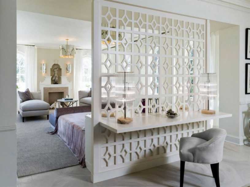 Сейчас популярно зонировать пространство. Спальню и гостиную разделяют перегородками, чтобы не выставлять место для отдыха напоказ.