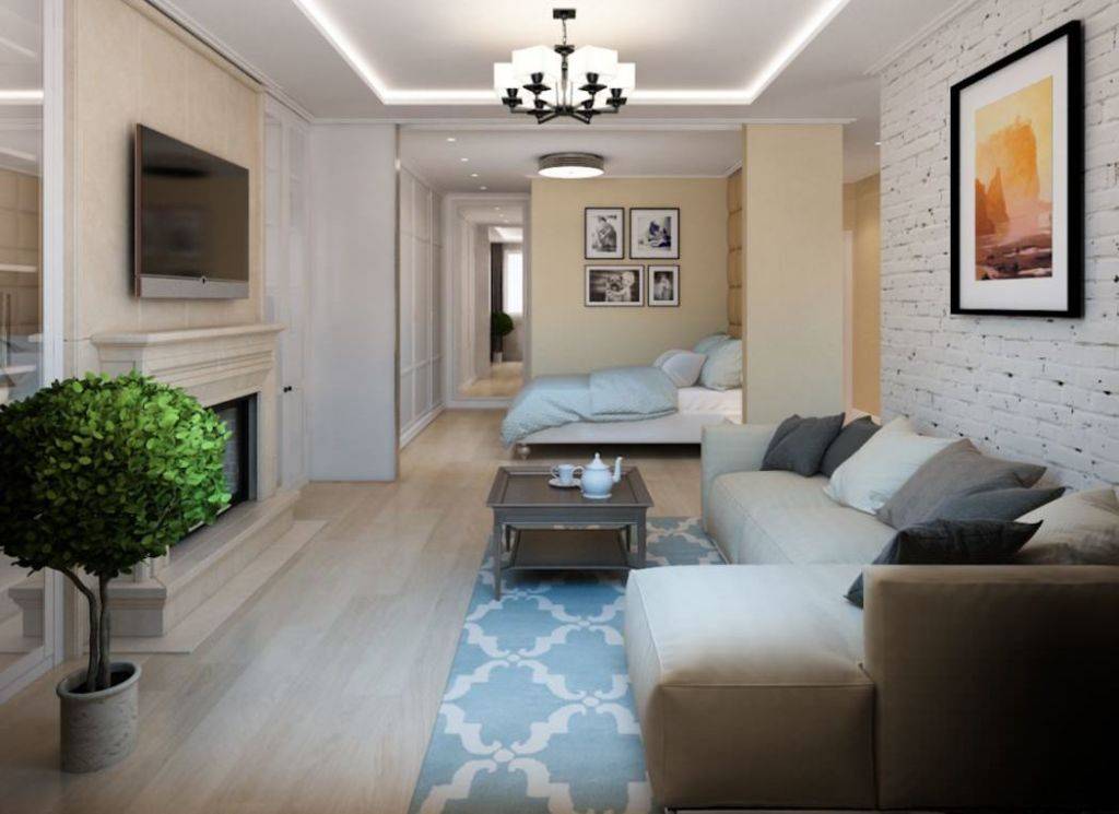 Гостиная-спальня в дизайне однокомнатной квартиры 50 кв. м