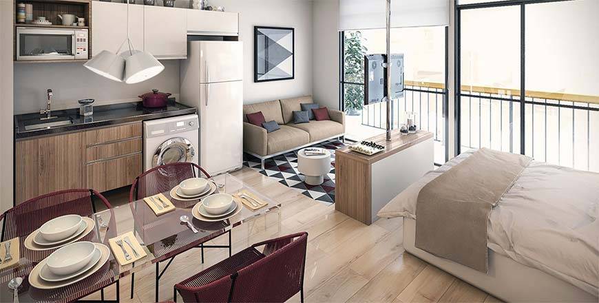 В небольшой комнате необходимо грамотно продумать разные зоны для комфортного жилья. Помимо эстетичности, эти зоны должны быть функциональными и практичными. В таком помещении необходимо выделить кухонную и столовую зону, ванную комнату, гардеробную, место для сна, отдыха и встречи гостей.