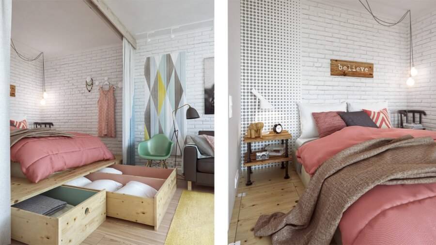 Варианты зонирования однокомнатной квартиры