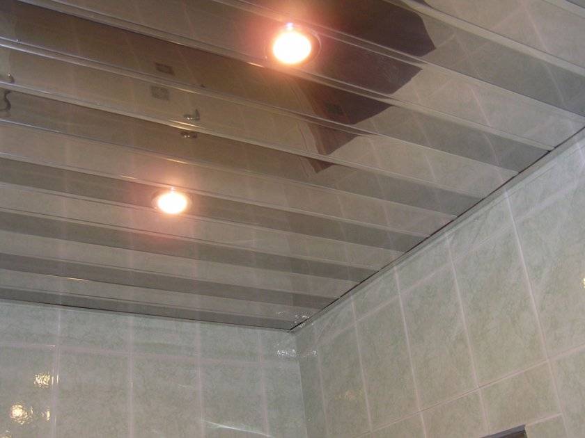 Потолок в ванной — отделка ПВХ панелями в интерьере