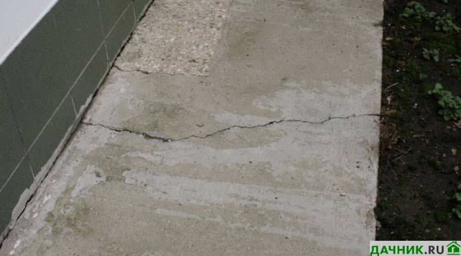 | 40 мм и более | Заливают бетоном, часто требуется новая заливка | При таких трещинах происходит раскол конструкции. Вернуть первоначальный вид можно, если на повреждённых участках сделать новую отмостку вокруг дома своими руками, пошаговая методика возведения была описана выше в статье. Куски бетона выбирают и заливают заново с учётом рекомендаций. |