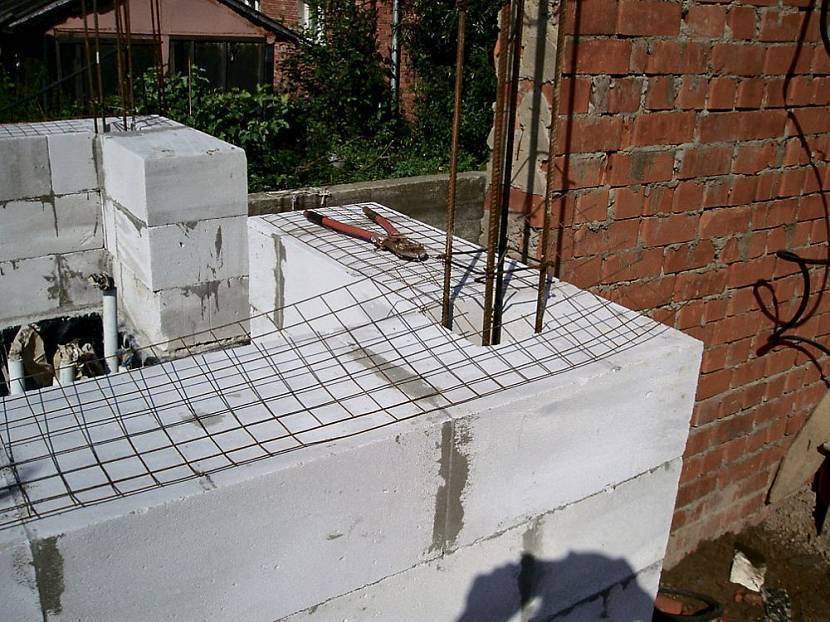 - Чтобы предотвратить усадку и разрушение стен, в ходе укладки блоков производится армирование в первом и в каждом четвёртом ряду, а также в районе оконных проёмов.