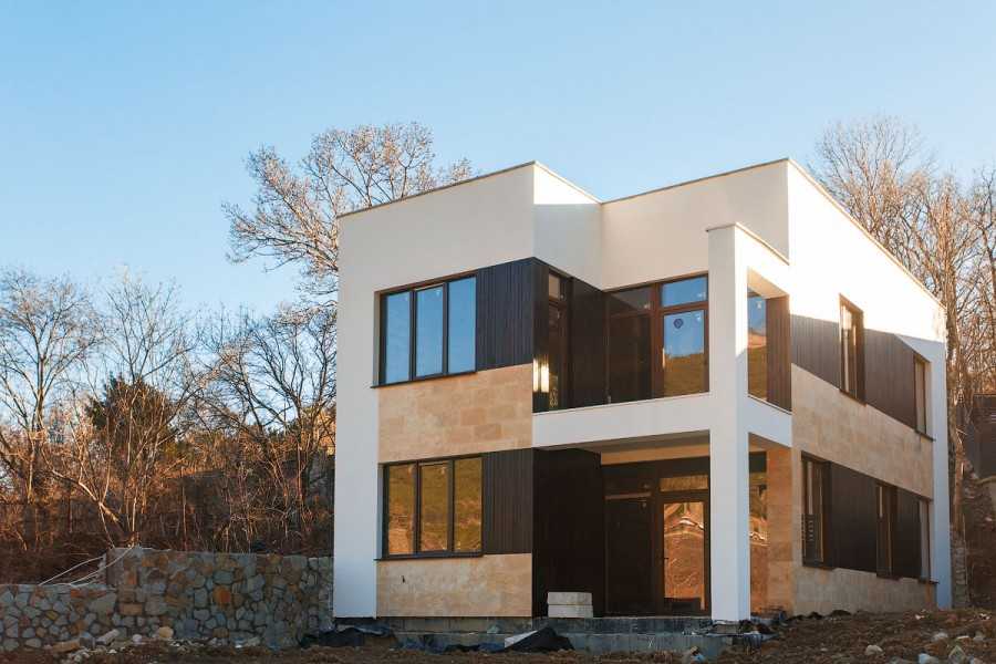 Фасады таких строений отличаются простотой и, в то же время, изысканностью. Основой дома является самая обычная прямоугольная коробка.